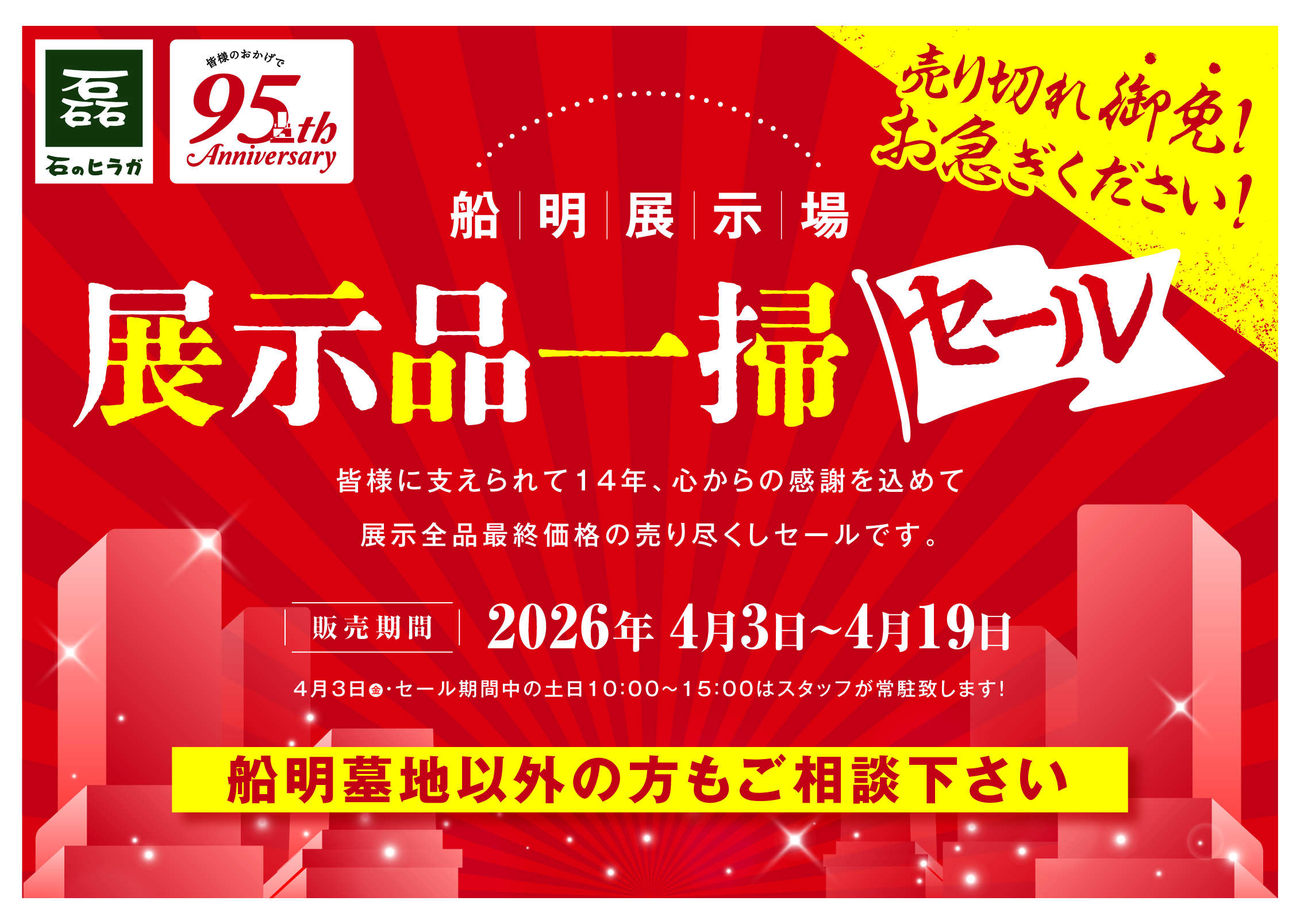 皆様に支えられ14年、心からの感謝を込めて「展示品一掃セール」を開催いたします。