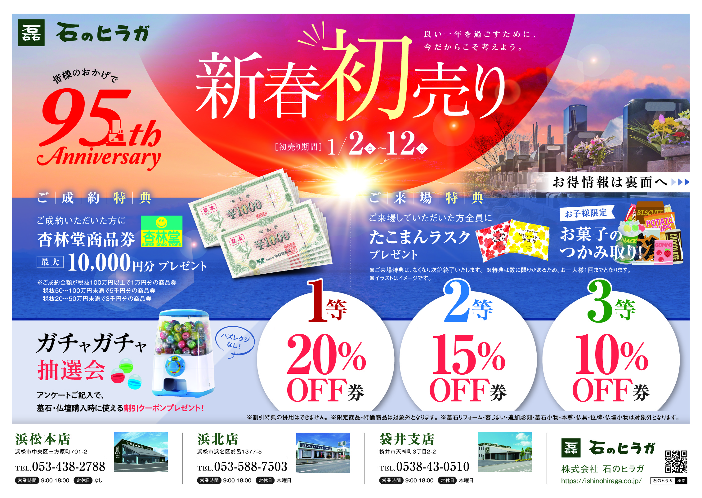 新年は1月2日(金) 午前9時より「新春初売り」を開催いたします。